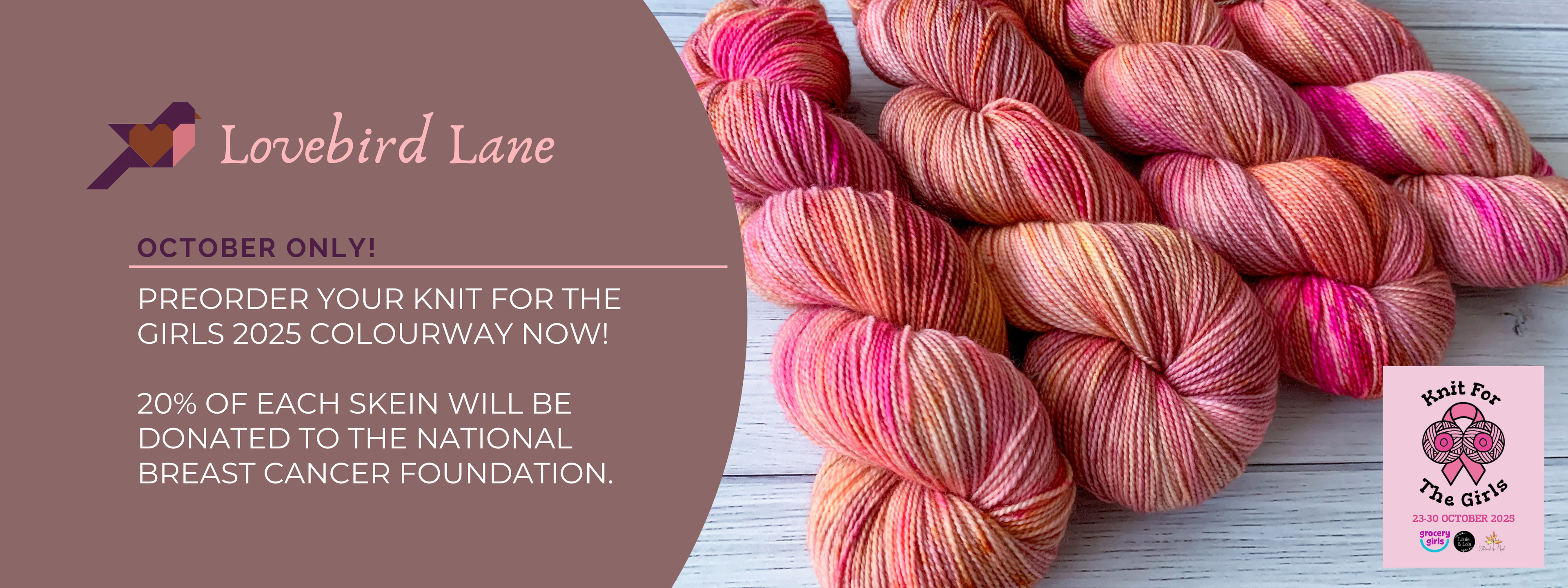 Born of our founder's love of the fibre arts, Lovebird Lane offers a range of hand dyed yarns, stitch markers, homewares and more. Everything in store is lovingly hand crafted by Julieanne Cole.