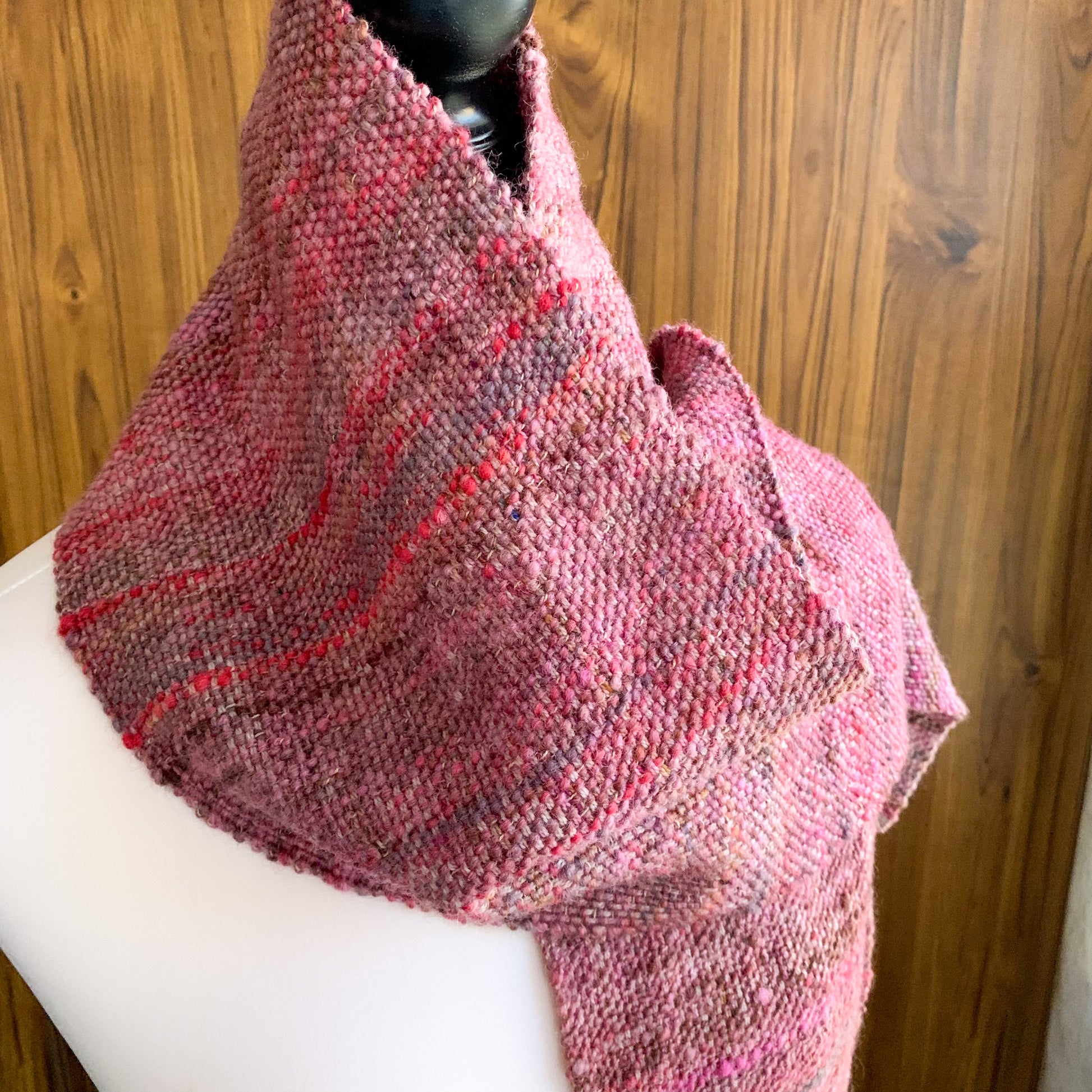 Handwoven scarf by Julieanne Cole of Lovebird Lane. This scarf is snuggly but a little on the rustic side to the touch; still soft though! I (Julieanne!) have no issues with it up against my neck and would happily wear it. It is beautifully textured and features yarn dyed by me as below. A gorgeous gift for a loved one, or treat yourself!